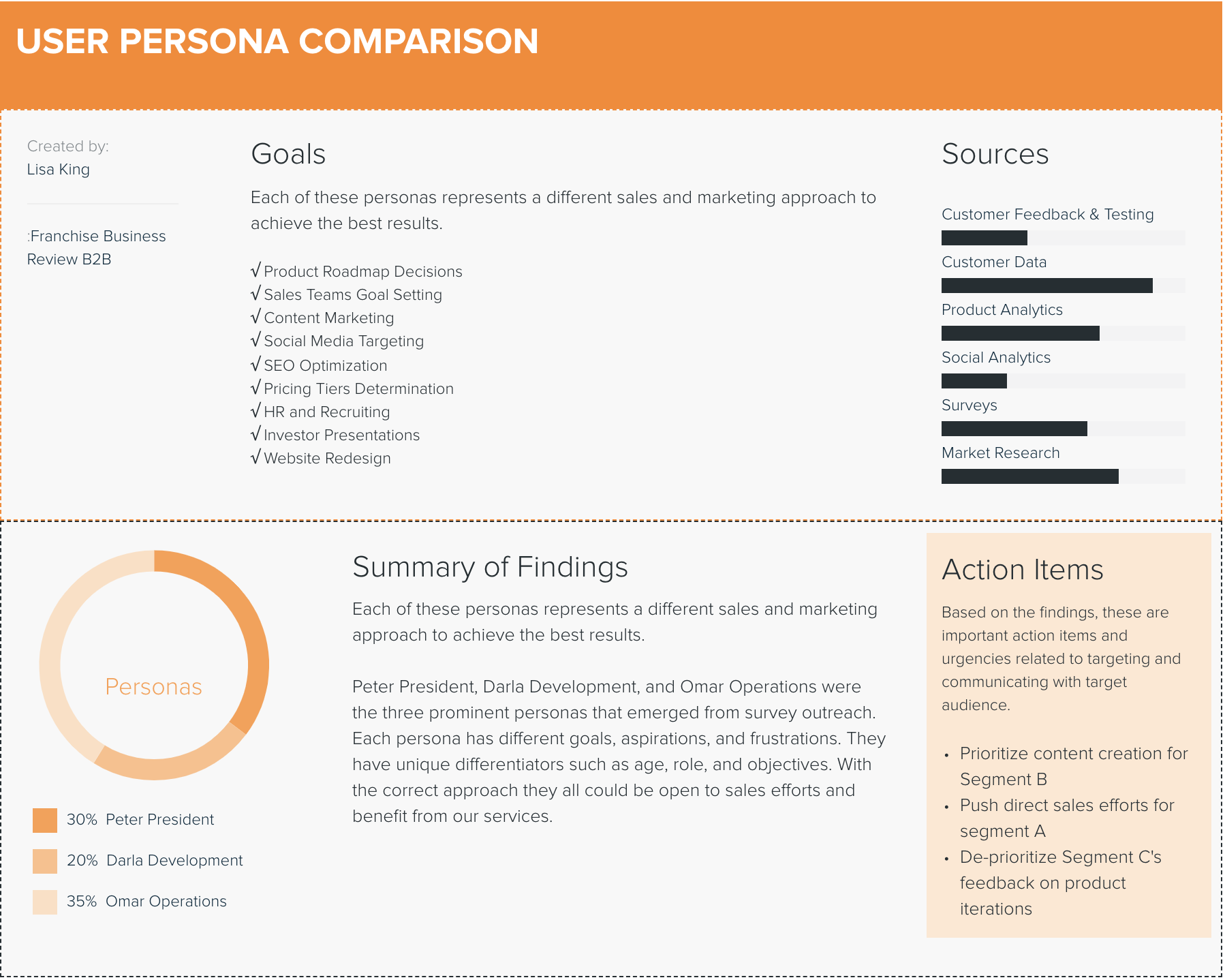 I created the User Persona Comparison above to differentiate the audience segments.